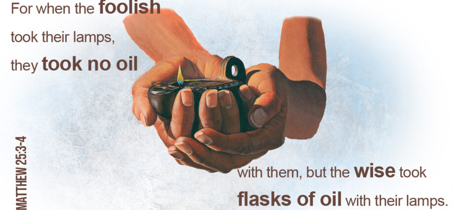 In the Gospel of Luke, chapter 12, our Master Jesus teaches us to always be prepared for his coming. In Luke 12:35(NLT), he said, “Be dressed for service and keep your lamps burning.” His reference to “lamps burning” reminds us of his parable of the five foolish bridesmaids in Matthew 25. There was no electricity during Bible days, so clay lamps with spouts were their source of light, and these had to be oiled periodically in order to continue burning. The five foolish bridesmaids, along with the five wise ones, were heading out to meet the bridegroom. As was their custom during those times, they all took their lamps with them. Jesus tells us that five of the bridesmaids were foolish because they didn’t bring enough oil to keep their lamps burning during the night. A trip to the store to purchase more oil caused them to miss the bridegroom and to be cut out of the blessing of the wedding celebration.